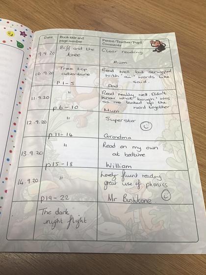 If your child is in Year 3 or 4 they will usually be reading to an adult so it would normally be filled in by them. If your child is older, Year 5 or 6, and sometimes reads to themselves, then they can also add their own comment next to their name.